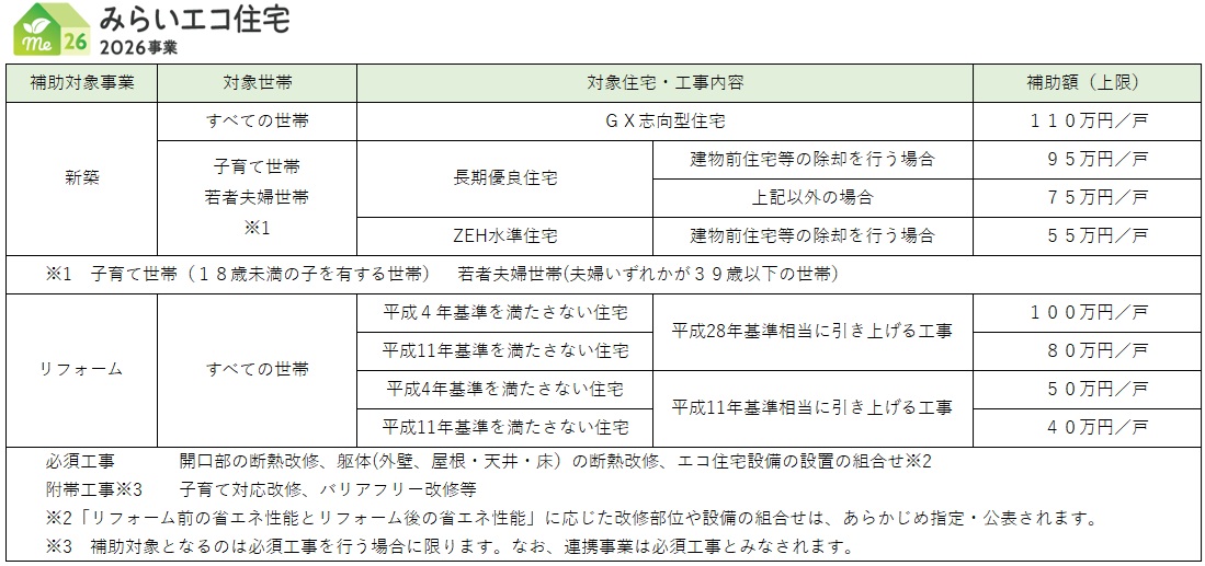 国土交通省・経済産業省及び環境省は、3省の連携により、「省エネ住宅の新築を支援する補助制度」「既存住宅の省エネリフォームを支援
